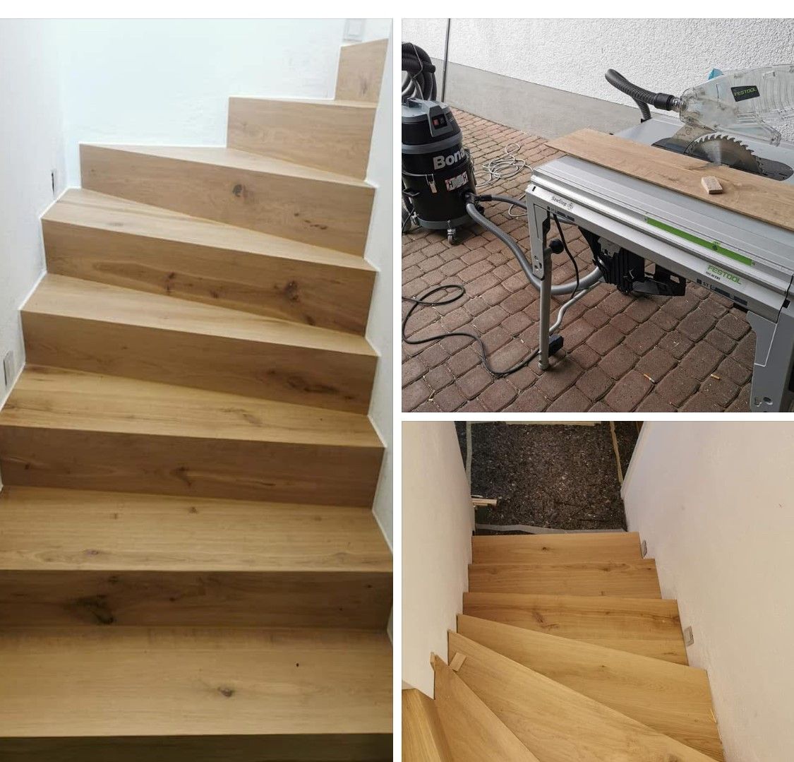 Mit über 35 Jahren Erfahrung und modernem Maschinenpark legen wir großen Wert auf Pünktlichkeit, Termintreue und hochwertige Arbeit. Für die Treppenrenovierung bieteten wir verschiedene Verfahren und Materialien an, um eine saubere und technisch einwandfreie Sanierung zu gewährleisten. Je nach vorhandenem Bodenbelag und Beanspruchung können Trittstufen mit Laminat, Holz, textilen Belägen oder Designvinyl belegt werden. Bei Holztreppen besteht zudem die Möglichkeit diese abzuschleifen und neu zu lackieren.